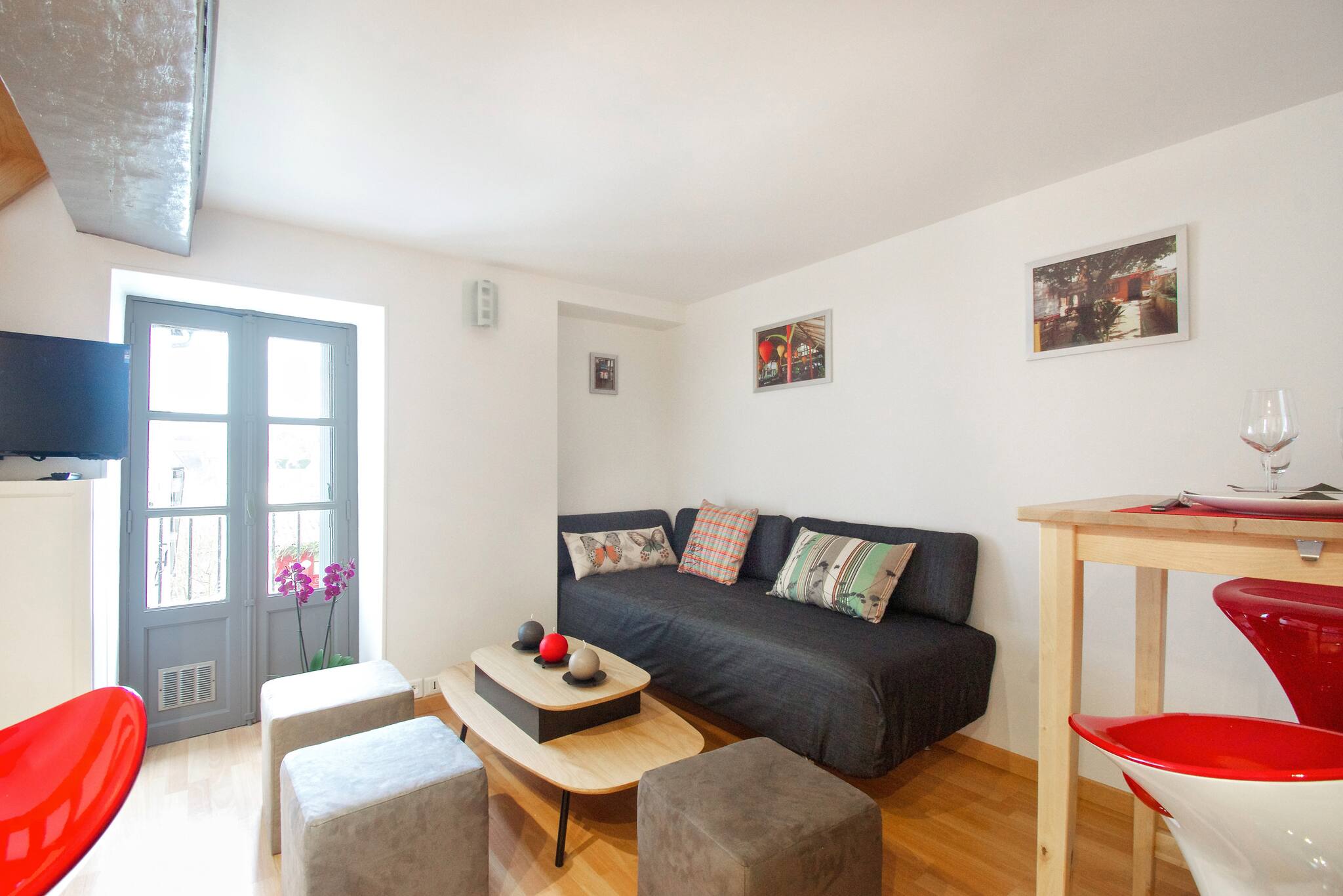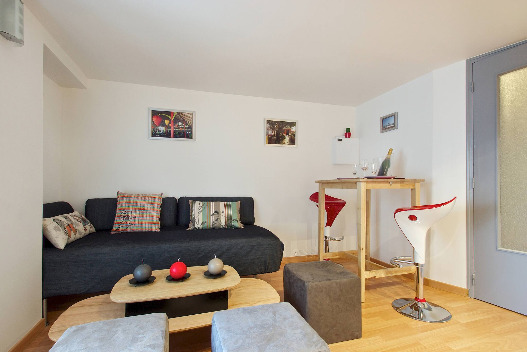 L'appartement dispose d'une chambre avec un lit double et un canapé-lit, permettant d'accueillir confortablement jusqu'à 3 personnes. La cuisine entièrement équipée vous permettra de préparer vos repas avec tous les équipements nécessaires : réfrigérateur, four, lave-vaisselle, machine à café, et bien plus encore.