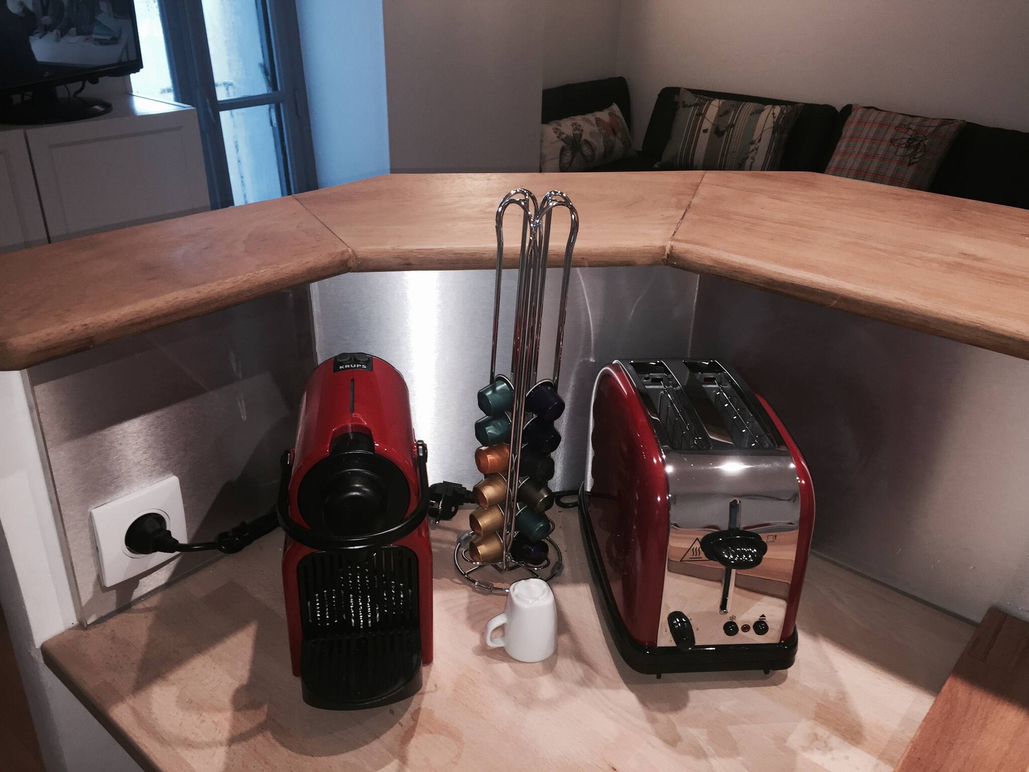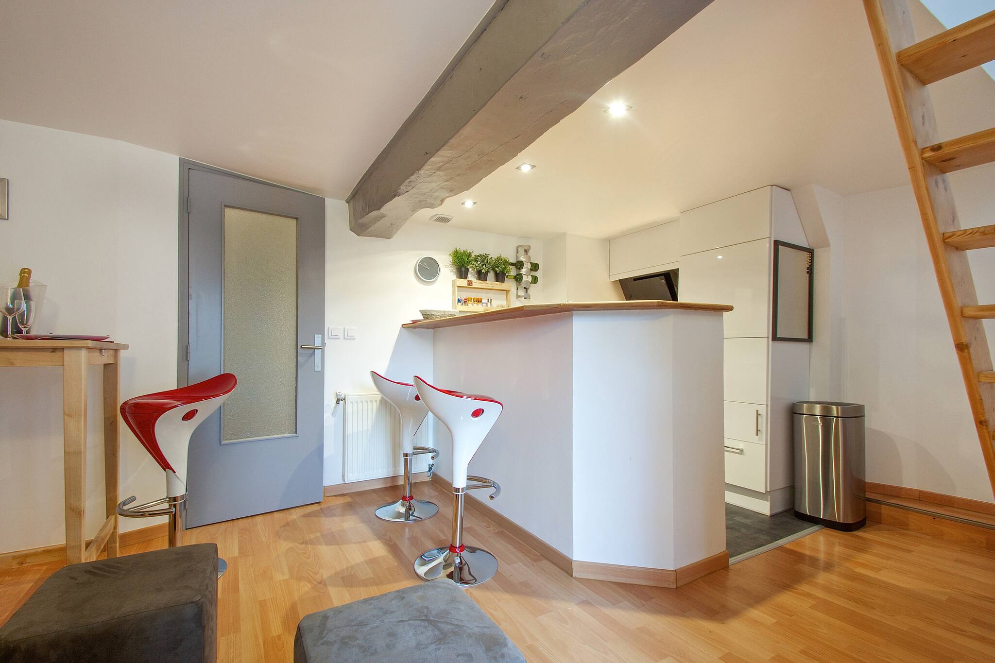 Vous trouverez dans l’appartement un système garde-manger/mini bar mis à votre disposition (en sus payant). Pratique pour dépanner en cas d’arrivés tardive.