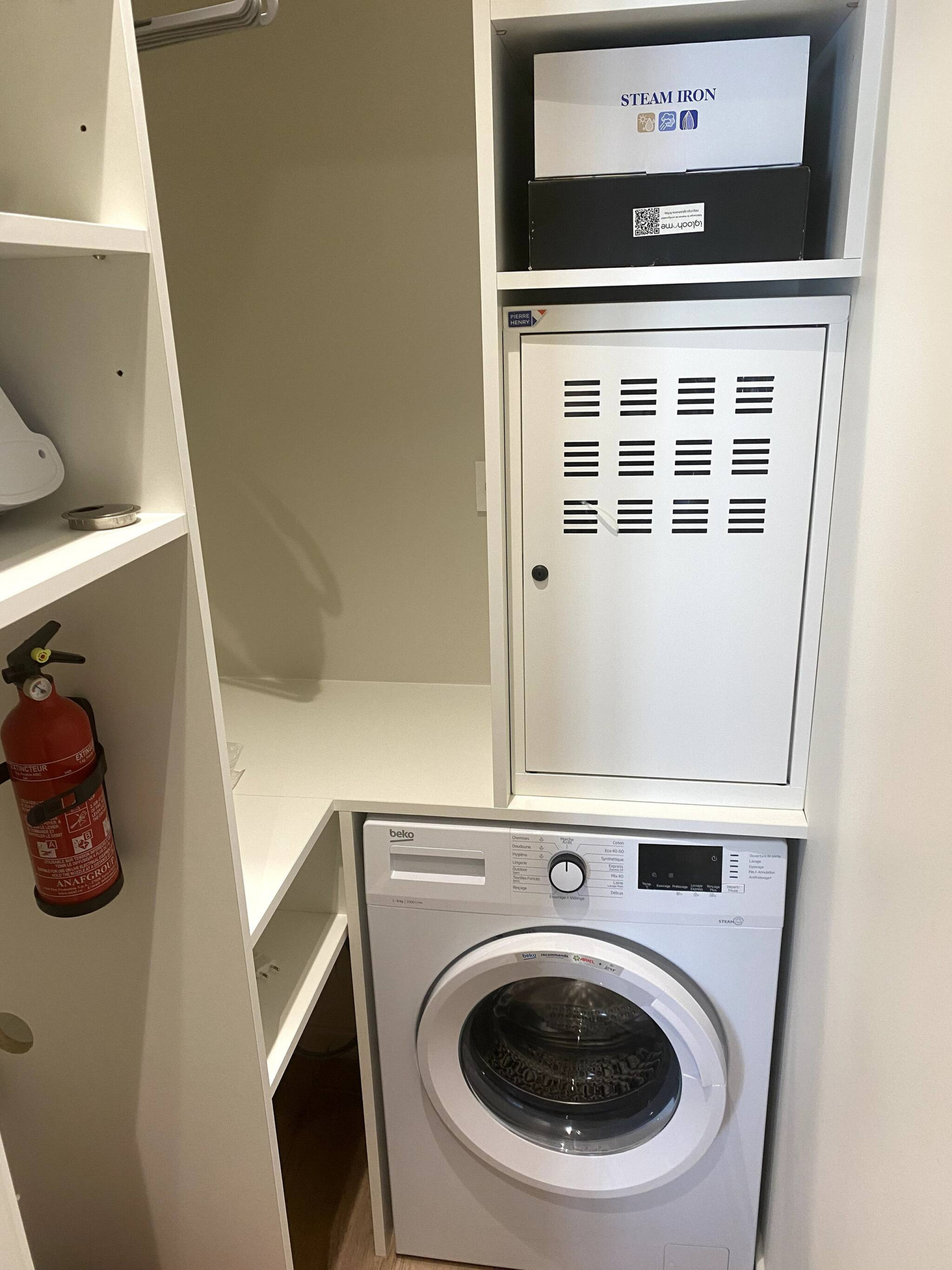 Les équipements pratiques ne manquent pas : WiFi, télévision, fer à repasser, machine à laver et sèche-linge. Le chauffage électrique et les stores occultants garantissent un confort optimal. L'entrée privative et les équipements essentiels comme un extincteur et un détecteur de fumée assurent votre sécurité.