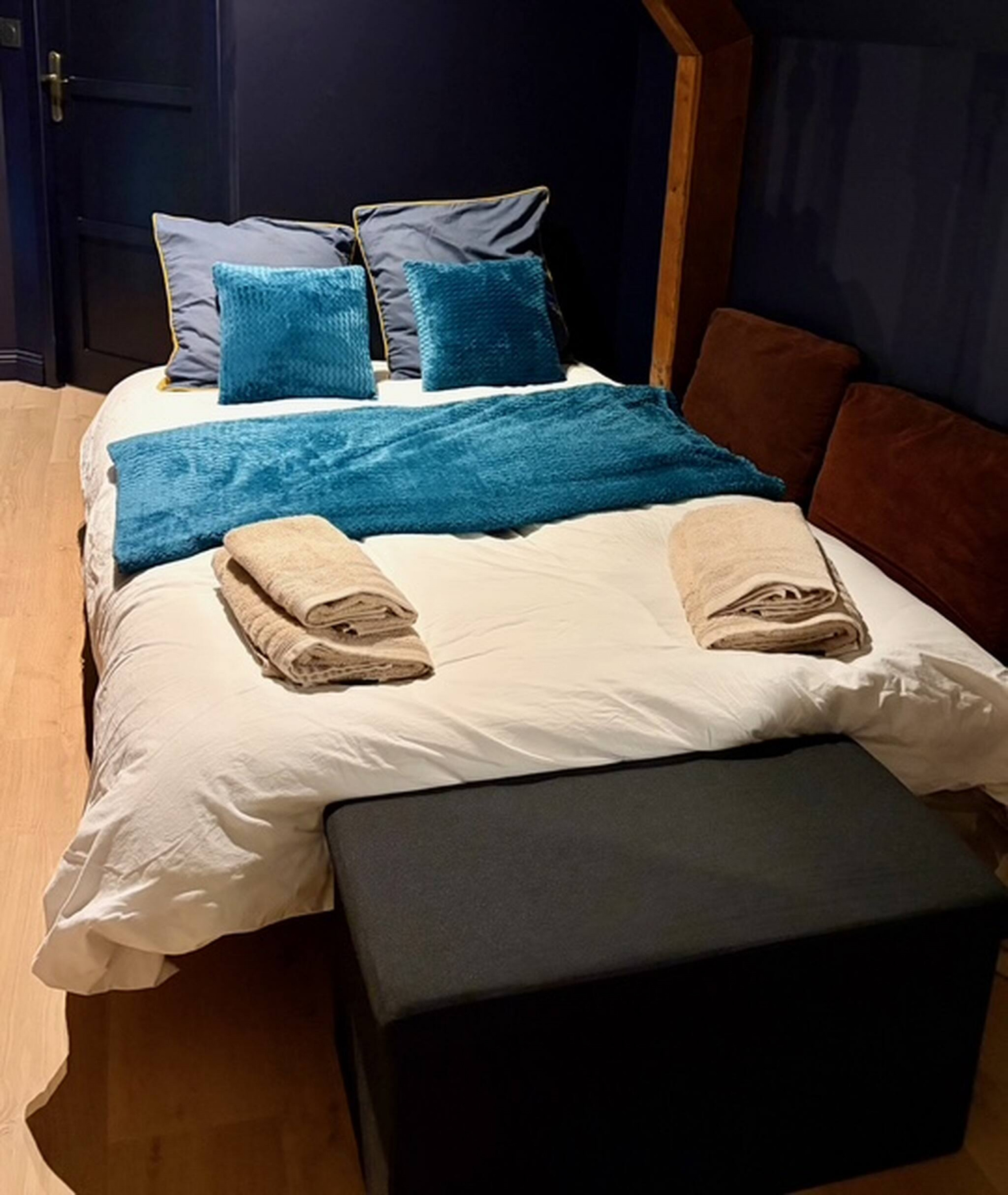 A l’étage se trouve une première chambre (lit 160) sur votre gauche.