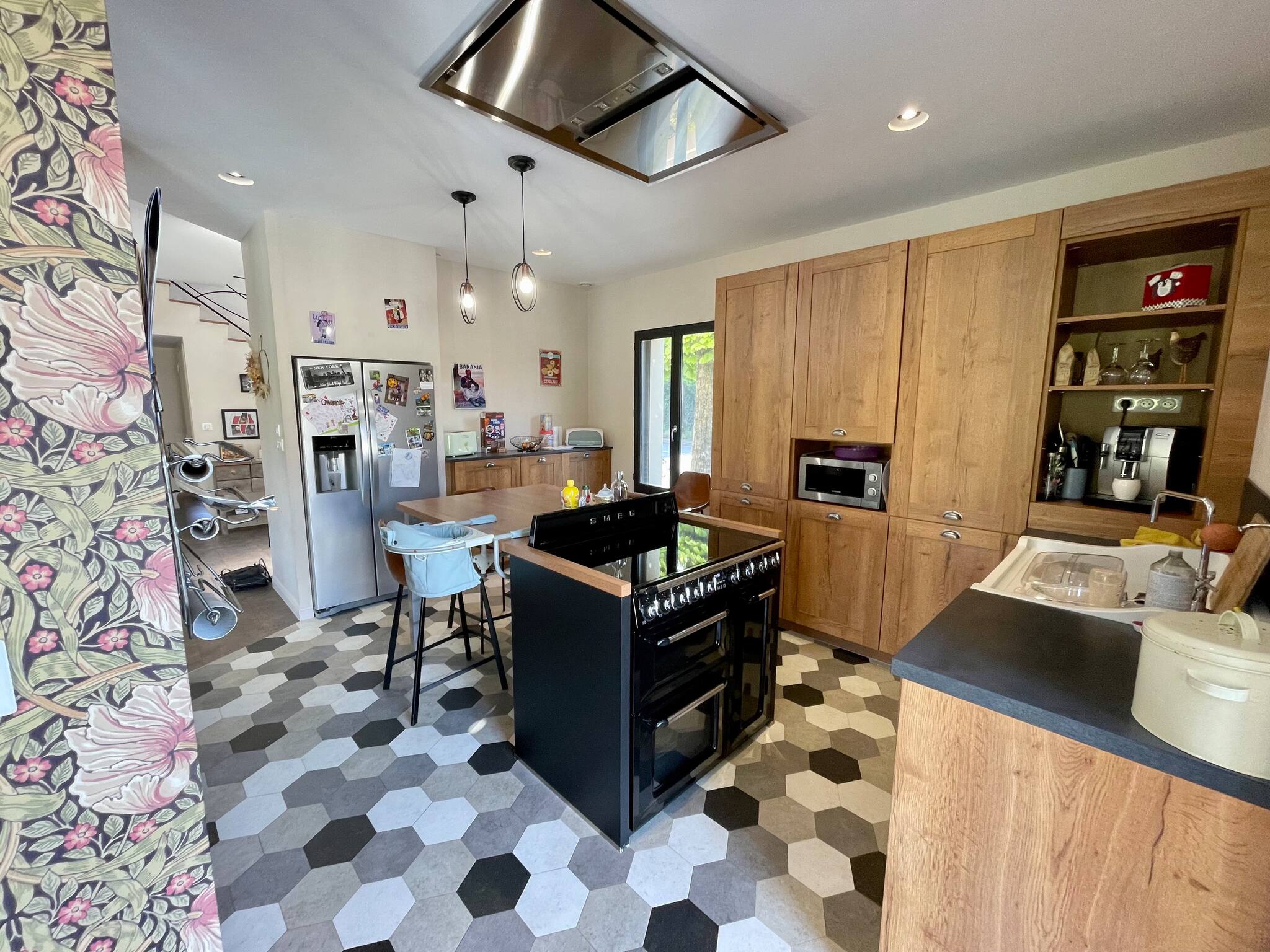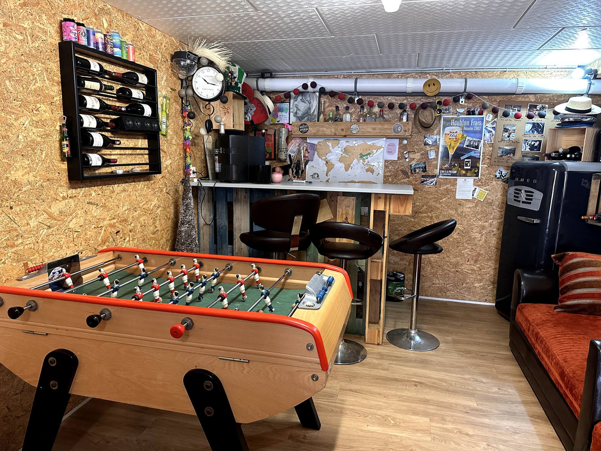 La pièce de vie du RDC comprend une cuisine, une cheminée, divers jeux (baby foot, Table de Ping Pong, fléchettes ...)