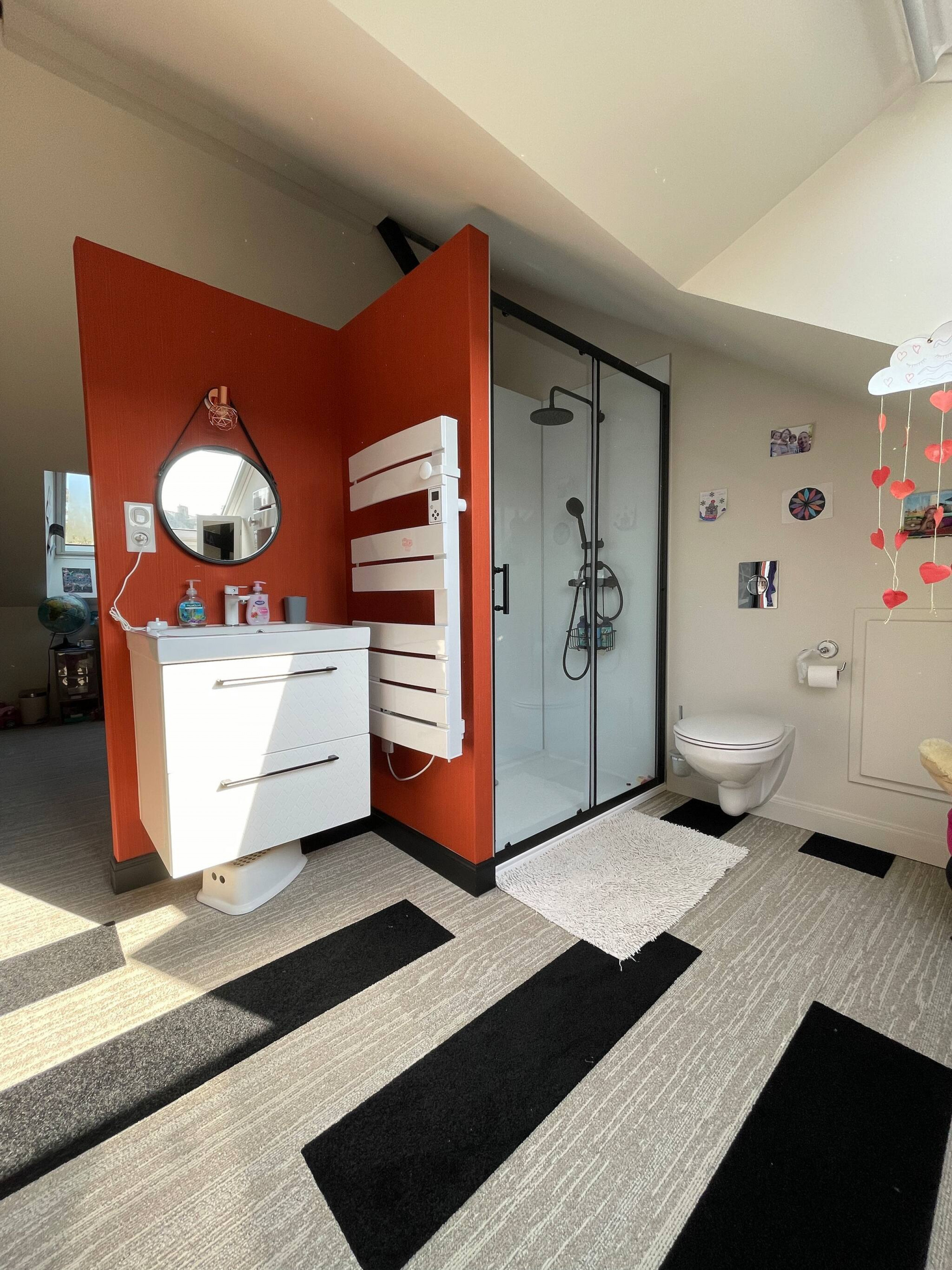 1 SDB balnéo attenante à la chambre parentale et 2 salles de douches.